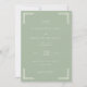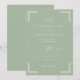 This elegant wedding invitation features a soft sage green background with a clean, modern layout. The design includes delicate script and serif fonts that create a sophisticated yet intimate feel, perfect for a timeless celebration. Subtle decorative borders frame the text, enhancing the overall refinement of the invitation. Ideal for couples seeking a classic and serene aesthetic, this template is customisable to suit your special day.