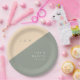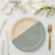 These sage green and cream minimalist, elegant, monogrammed wedding paper plates can be personalised with your information in modern typography. Designed by Thisisnotme©