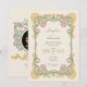 This elegant sage green and gold Art Nouveau floral wedding invitation features an ornate vintage frame adorned with flowing botanical details and soft blush flowers. Inspired by classic turn-of-the-century design, the decorative border creates a romantic and timeless atmosphere perfect for weddings, engagement parties, or formal celebrations. The refined typography and symmetrical layout add a sophisticated touch, while the customizable text allows you to personalize it for your special day. Ideal for couples who love vintage aesthetics, romantic florals, and graceful, old-world charm.