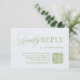 This refined RSVP card features sage green serif typography with a flowing script accent and a QR code for guests to respond online. Ideal for modern weddings that blend timeless elegance with digital convenience. Includes space for your wedding website and a deadline for replies. Perfect for formal garden weddings, summer celebrations, or traditional events with a modern touch.