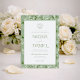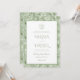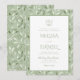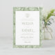 The front features a classic white layout framed by a soft sage border, adorned with a delicate botanical crest and monogram wreath, perfect for showcasing your wedding details in a clean, sophisticated style. The typography blends graceful script with refined serif fonts for a formal yet airy look. The back of the invitation is finished with a soft sage leafy pattern, adding depth, texture, and a coordinated botanical touch that feels both natural and luxurious.