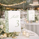 Designed to coordinate beautifully with your wedding stationery suite, this piece features a clean ivory background framed in soft sage green, accented with delicate botanical elements for a refined, natural look. The minimalist layout ensures your table numbers remain clear, readable, and visually sophisticated.