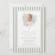 Elegant Sage Green Bow Photo Boy Baptism Invitation