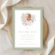 Elegant Sage Green Bow Religious Baptism Photo Thank You Card