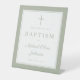 Elegant Sage Green Cross Boy Baptism Welcome Pedestal Sign