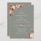 This design showcases elegant floral elements in autumn shades of gold, burgundy, greens and beige on sage green. Explore the collection on this page to find coordinating items in this design.