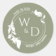Elegant Sage Green Foliage Double Ring Monogram Classic Round Sticker