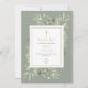 Elegant Sage Green Funeral Memorial Gold Cross Thank You Card