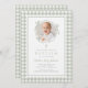 Elegant Sage Green Gingham Bow Photo Girl Baptism Invitation