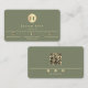 Elegant Sage Green Gold Shiny Circle Monogram Business Card