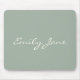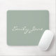 Elegant Sage Green Handwritten Script Name Custom Mouse Mat