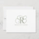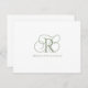 An elegant sage green monogram note card featuring an ornate script with swashes overlay on a serif initial, with your name underneath. Elegant, chic contrasting type.