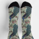 These Elegant Sage Green Peacocks and Magnolia Flowers Socks feature hand-drawn blue and teal peacocks perched on Magnolia treen branches in bloom on a sage green background.