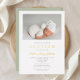 Elegant Sage Green Phot Baptism Gold Foil Invitation.