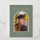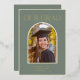 Celebrate your graduate’s achievement with this elegant gold foil graduation announcement. Featuring a sophisticated arched photo frame, classic serif typography, and luxurious gold accents on a muted sage green background, this timeless design is perfect for high school or college graduations. Personalise with the graduate’s name, school, and class year for a keepsake-worthy invitation.