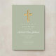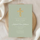 Personalised Elegant Sage Green Religious Cross Baptism Invitation.