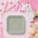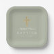 Personalised Elegant Sage Green Religious Cross Baptism Paper Plates.