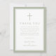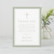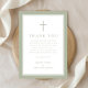 Elegant Sage Green Religious Cross Baptism Thank You Card