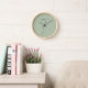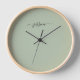 Modern clock with a sage green background and a hand lettered black girly script name. Personalise with your name