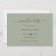 Announce your sage green wedding party with these minimalist, yet elegant save the date cards. Easily personalise online. Matching items available to complement this wedding save the date card with a modern script.