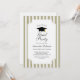 Celebrate your graduate's big achievement with this Elegant Sage green Stripes Graduation Party Invitation! Featuring a classic sage and white striped background, a stylish graduation cap illustration, and elegant script fonts, this invitation is perfect for announcing your graduate's special day in style. Personalise it with the graduate's name, school, and party details to create a unique and memorable invite. Ideal for high school, college, or university graduation celebrations, this modern and timeless design sets the perfect tone for a sophisticated grad party.
