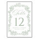 Elegant Sage Green Victorian Floral Wedding Table Number