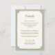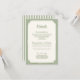 This sage green details card offers a calm and elegant way to share important wedding information with your guests. The clean outlined frame keeps everything organized in a simple and readable layout, while the soft green border adds a gentle touch of sophistication. It pairs beautifully with classic, garden, and minimalist wedding styles. All text can be fully customized, allowing you to include accommodations, directions, transportation notes, and any extra details needed to coordinate your celebration.
