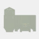 Simple, elegant, minimal, modern sage green wedding favour box with bride and groom names, date and gold rope heart.