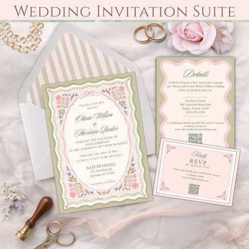 Elegant Sage Green Floral Wedding Invitation SuiteDesigned by Michele Slade