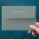 Elegant sage green return address envelopes for your wedding invitations, save the dates, engagement announcements, couples shower invites, thank you cards and other correspondence featuring your first names monogrammed in a classic white serif typography and your address in simple modern white lettering.