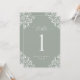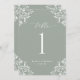 Elegant Sage Green Wedding Table Numbers: Use these vintage, classic table numbers at your wedding reception or event. This design features the word "Table" in an elegant calligraphy with an ornate vintage corners design for a luxe look. It's set in sage green, but you can change the colour to anything you like! Just click "customise more" and change the background colour.