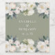 This design features a sophisticated sage green background adorned with delicate white flowers. Luxurious decorative typography adds a touch of class and refinement. Intricate floral patterns in pristine white create a striking contrast against the serene sage green backdrop. This combination of elegance and modernity ensures a timeless and stylish presentation. The ornate typography enhances the overall aesthetic, making this design a beautiful and memorable keepsake.
