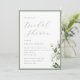 Custom-designed bridal shower invitation card featuring delicate calligraphy with elegant sage greenery and white floral design.