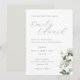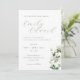 Custom-designed wedding invitation card featuring delicate calligraphy with elegant sage greenery and white floral design.