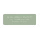 This return address label features a minimalist design with a muted sage green background and clean, modern sans-serif typography. The centered text is arranged in three evenly spaced lines for a balanced look, creating an elegant and professional appearance. Perfect for formal occasions or everyday use, this label combines simplicity with sophistication, ensuring your mail stands out with clarity and style.