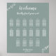 Elegant sage wedding seating chart with changeable white text - you can add Bride's and Groom's name, wedding date and guest's names (16 tables).