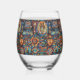 Elegant Sapphire "Pre-Columbian Tapestry" Stemless Stemless Wine Glass