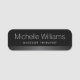 Personalised name tag featuring your name and title on a black background with a satin grey gradient borders along the bottom. Use for your professional business or as an accessory for a party or event. Follow us on Instagram: @business.perfectlycustom and Facebook: @businessstationery for business related products, news and sales