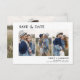 Modern and Elegant Landscape Horizontal Four (4) Photo Save the Date Wedding Magnet with hand lettered script typography. The save the date invitation magnet includes script typography and chic and simple design that you can add your customised engagement photograph picture to.