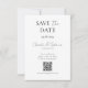 Share your exciting wedding date news with our modern save the date card with wedding QR code. The two sided photo save the date invitation features black and white script calligraphy fonts with a classic elegant design. Simply customise the front of the save the date invite by using the 'edit using design tool' feature on Zazzle to upload your favourite couple photo and your wedding date. The back of the wedding announcement invite can be edited by adding your names, wedding date, wedding location and option to upload a unique qr code to your wedding website so your guests can find more information about your wedding day plans.