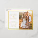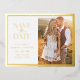 Elegant Save The Date Foil Invitation Postcard. Simple and stylish, this beautiful save-the-date wedding announcement postcard features a classy border and elegant calligraphy script pressed in real gold foil with a photo and QR code for personalising.