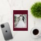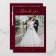 Elegant, stylish and simple wedding thank you template 2 photo card with gold foil on a beautiful burgundy background. Design features an elegant thank you script with editable photo, name of bride and groom with wedding date on front of card. Back of card features a second editable photo and message. Easy to customise text and photos. Get yours today!