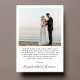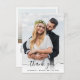 Elegant wedding thank you card featuring your wedding day photo overlayed with "thank you" in a chic script with swashes, and your first names and wedding date joined with a heart. On the reverse side, add an additional photo, personalise your thank you message and add your names in a signature-like script.