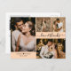 Elegant, Minimalist Hand Lettered Wedding 4 Photo Collage Thank You postcard. Stylish wedding thank you card template featuring four (4) photo on the front and one photo on the back. With the text "Love and thanks" in a swirly hand lettered typography script font with swash-tail font in black on light pastel peach, creamy peach colour background. Add your custom name and thank you message. If you prefer to handwrite your note, just delete the sample text to make more space. If You need help or matching item, please contact to me!