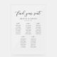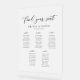Classic Calligraphy Script Wedding Seating Plan with a translucent white background. Find Your Seat Sign. Personalised Simple Minimalist Seating Chart for 50 guests (5 tables). Just click the customise further link, shown under the text personalisation area on the right, and choose your custom colour background. This sign poster template makes it fast and easy to create stunning additions to your wedding decor. Signs can be enlarged, there are many sizes to choose from, as well as options for custom framing and matting.