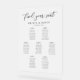 Classic Calligraphy Script Wedding Seating Plan with a translucent white background. Find Your Seat Sign. Personalised Simple Minimalist Seating Chart for 70 guests (7 tables). Just click the customise further link, shown under the text personalisation area on the right, and choose your custom colour background. This sign poster template makes it fast and easy to create stunning additions to your wedding decor. Signs can be enlarged, there are many sizes to choose from, as well as options for custom framing and matting.