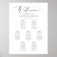 Classic Calligraphy Script Wedding Seating Plan. Welcome sign. Personalised Simple Minimalist Seating Chart for 70 guests (7 tables). Just click the customise further link, shown under the text personalisation area on the right, and choose your custom colour background. This sign poster template makes it fast and easy to create stunning additions to your wedding decor. Signs can be enlarged, there are many sizes to choose from, as well as options for custom framing and matting.