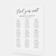 Classic Calligraphy Script Wedding Seating Plan with a translucent white background. Find Your Seat Sign. Personalised Simple Minimalist Seating Chart for 90 guests (9 tables). Just click the customise further link, shown under the text personalisation area on the right, and choose your custom colour background. This sign poster template makes it fast and easy to create stunning additions to your wedding decor. Signs can be enlarged, there are many sizes to choose from, as well as options for custom framing and matting.