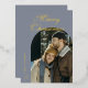 Elegant Script Arch Newlyweds Photo Gray Gold Foil Holiday Card