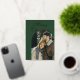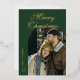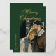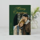 Elegant Script Arch Newlyweds Photo Green Gold Foil Holiday Card